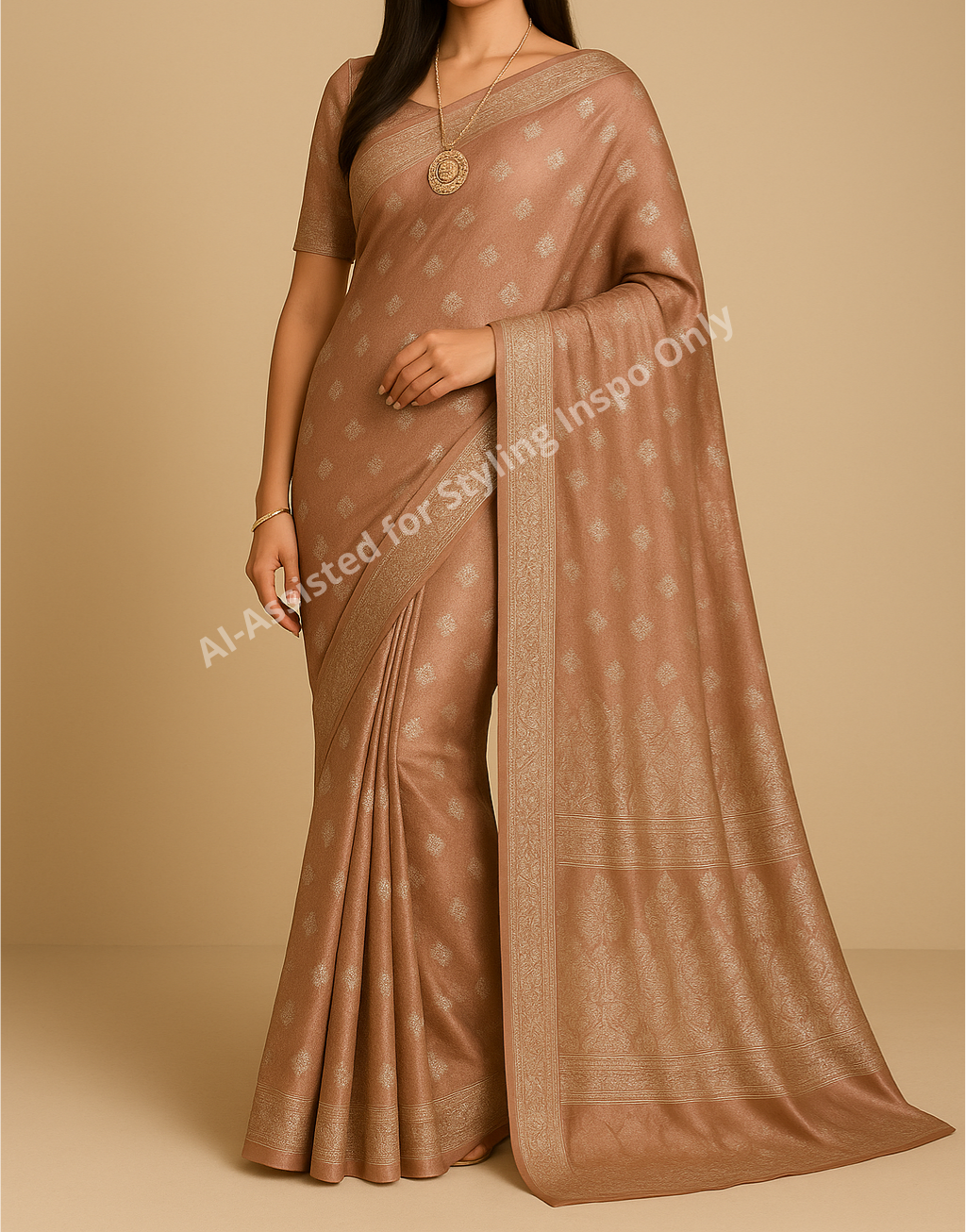 Indulge in understated luxury with our Rose Gold Banarsi Satin Silk Saree, blending rich texture with delicate sheen. The soft Badami Pink hue, paired with intricate zari detailing, exudes elegance, perfect for wedding festivities, intimate soirées, or timeless daywear.